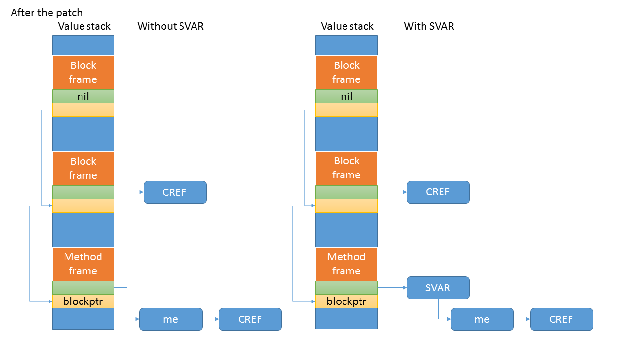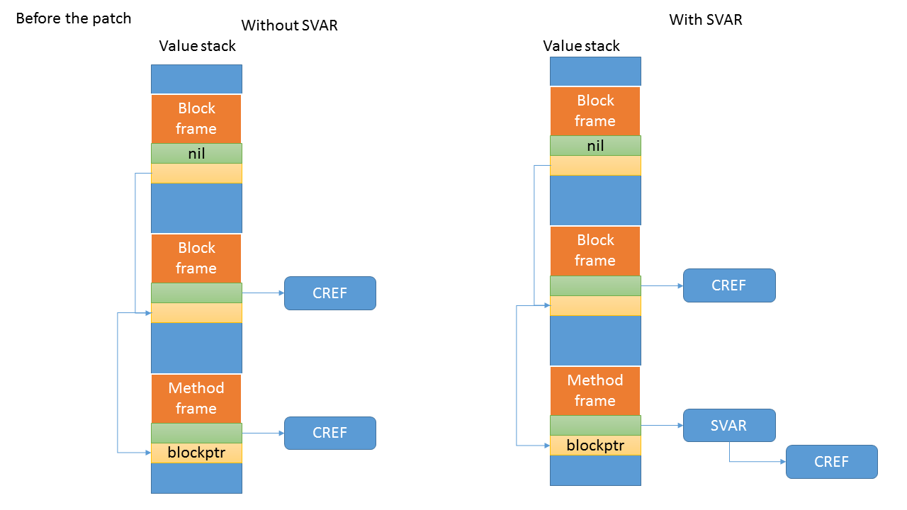 The following pictures show how SVAR/CREF/MENT are located at value stacks.