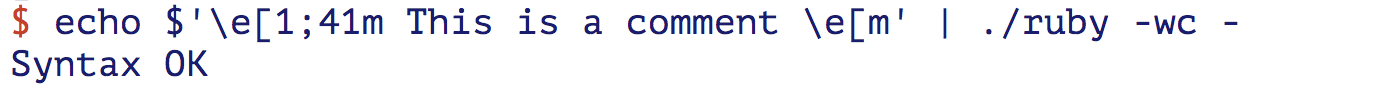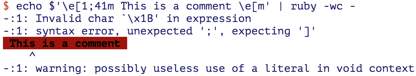 Turning on highlight mode (i.e., \e[1m) starts a comment and turning off (i.e., \e[m) ends it.