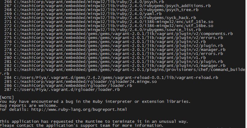 vagrant uses an embedded ruby interpreter. Please report vagrant support form.