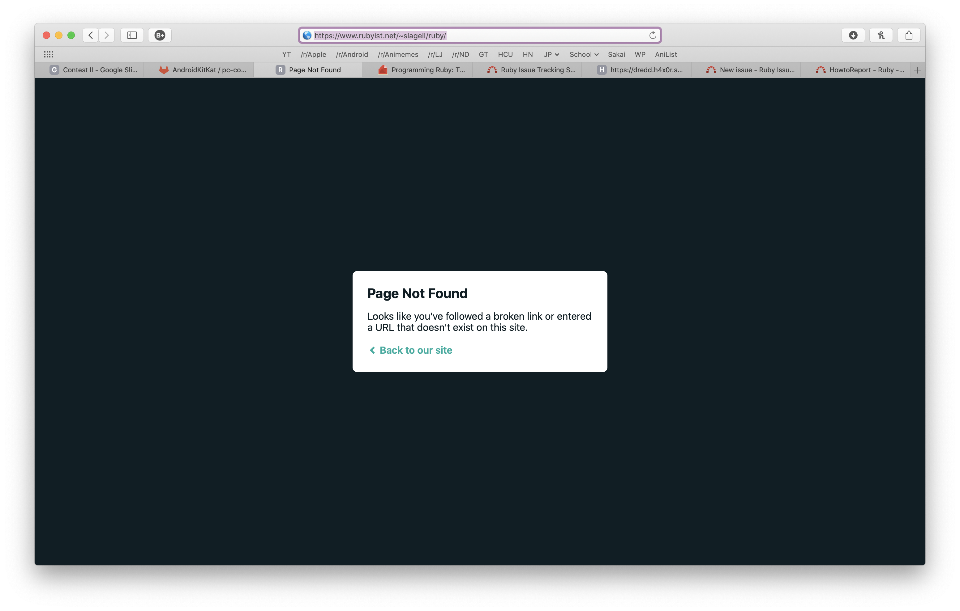 On the webpage https://www.ruby-lang.org/en/documentation/ , when you click on the "Ruby User's Guide" (which is a link to http://www.rubyist.net/~slagell/ruby/), the page gives you a 404 error.