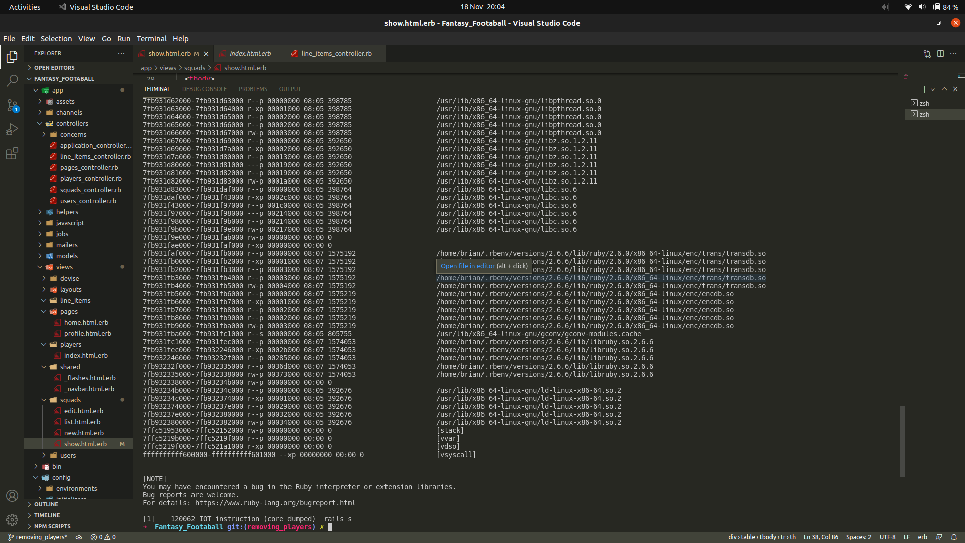 For details: https://www.ruby-lang.org/bugreport.html[1] 36345 IOT instruction (core dumped) rails s