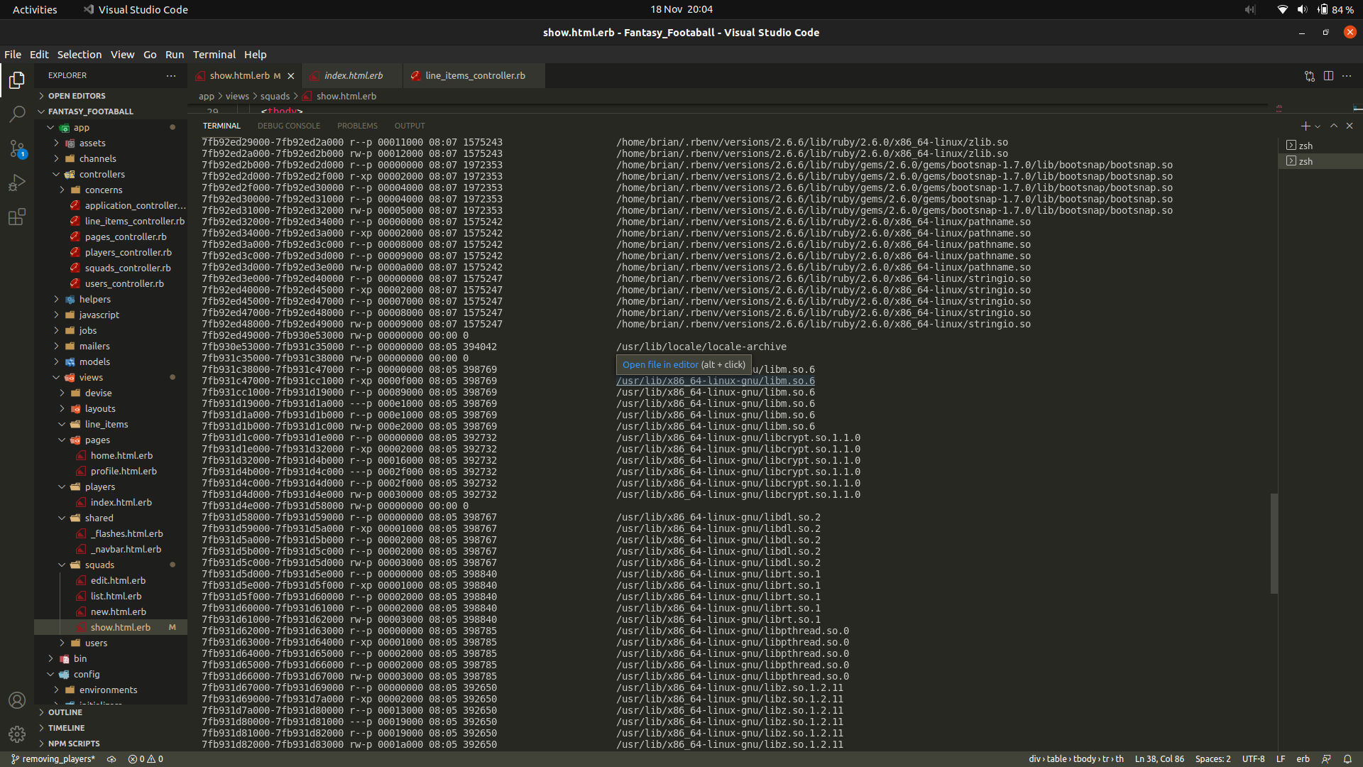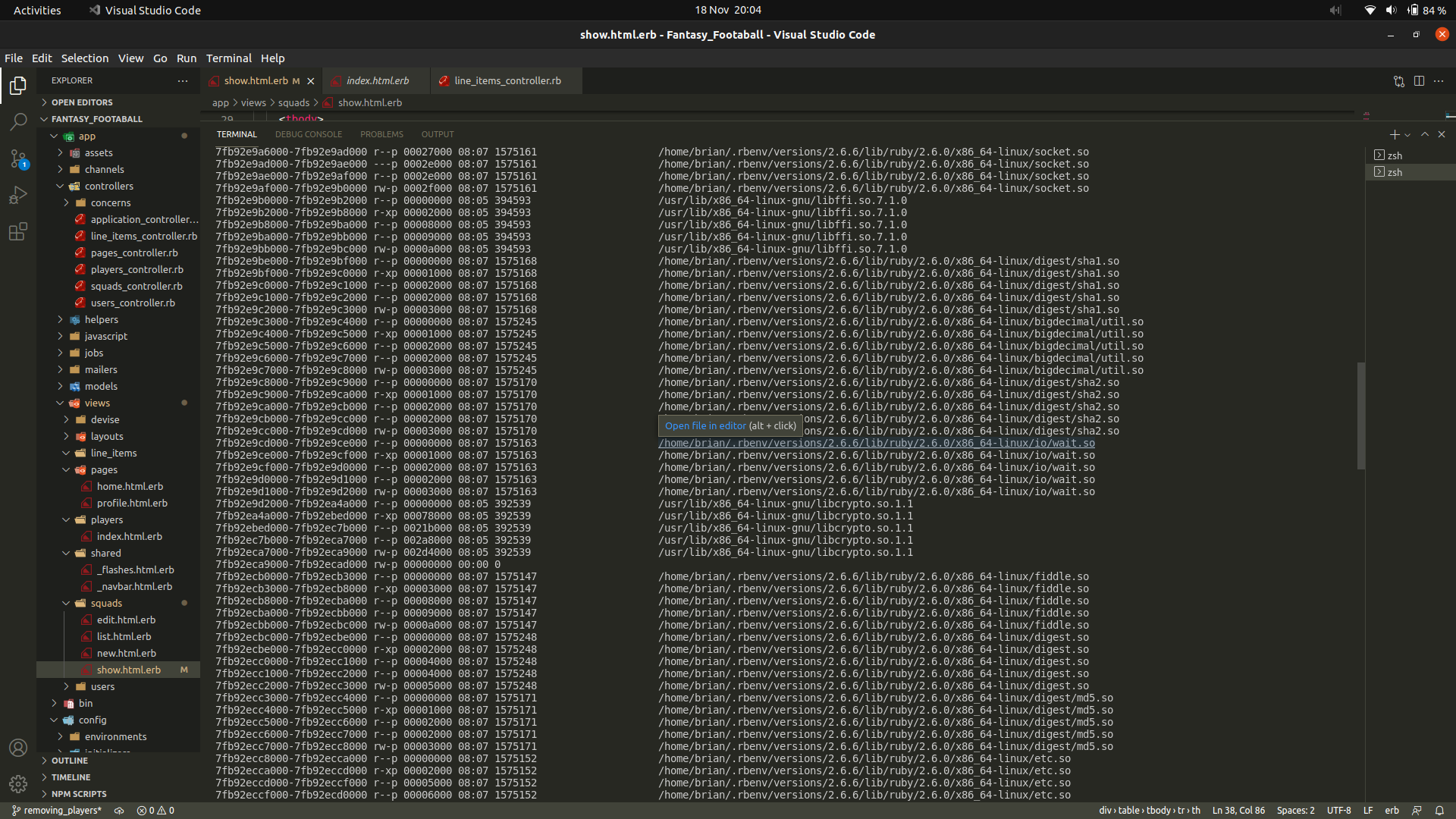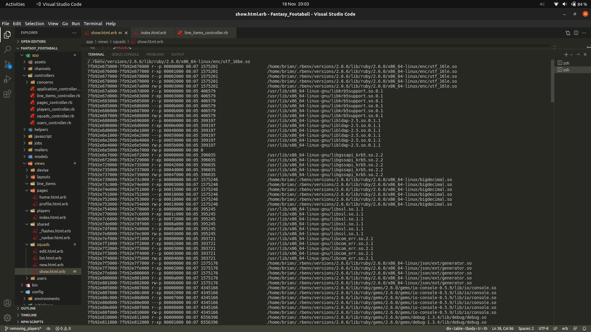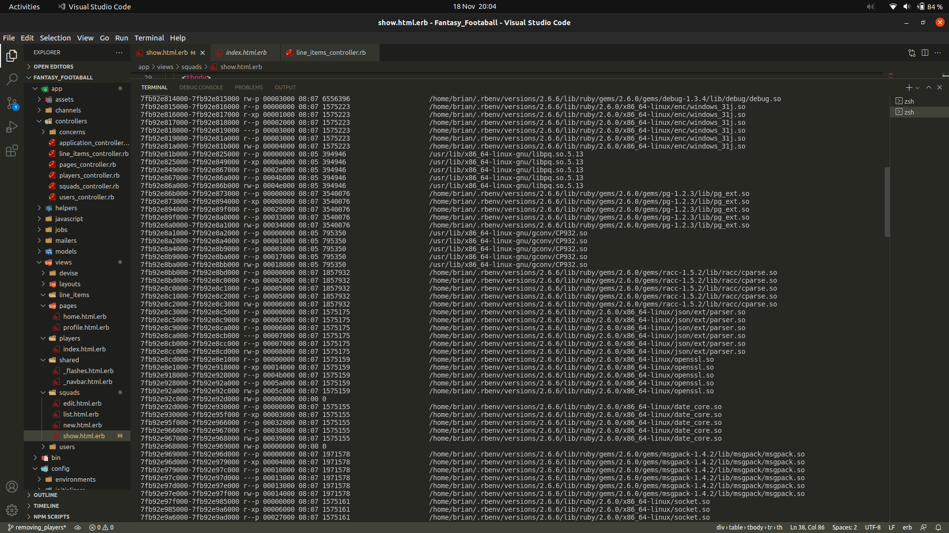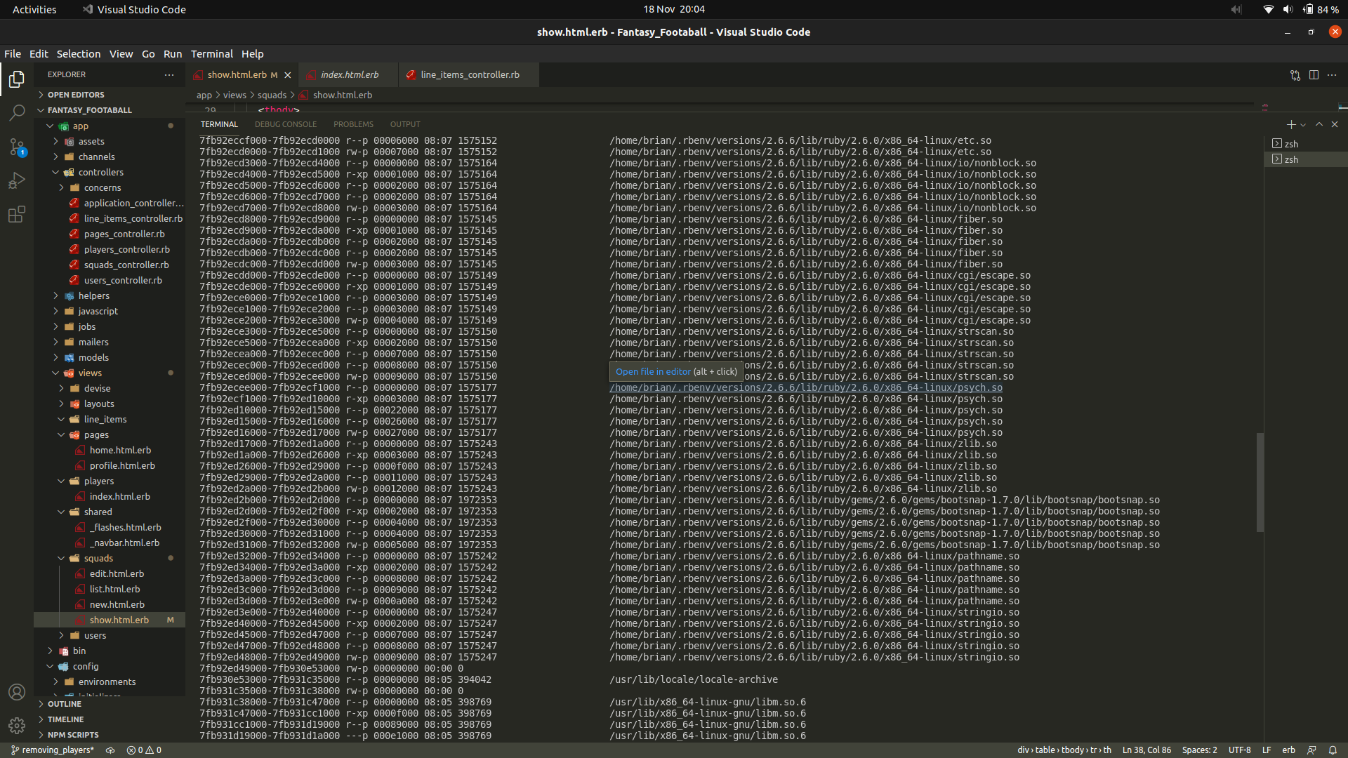 Quando inicio o server (rails s), faz o diagnostico habitual (Puma, etc...) mas depois ao inicializar o localhost, passados 5 segundos faz um print de uma lista extensa de diagnóstico, terminando com o seguinte erro: