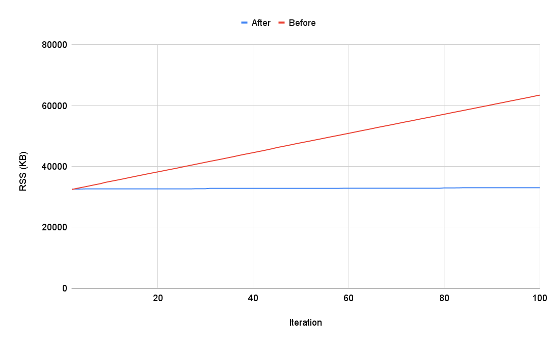 This is the memory usage graph before and after the patch: