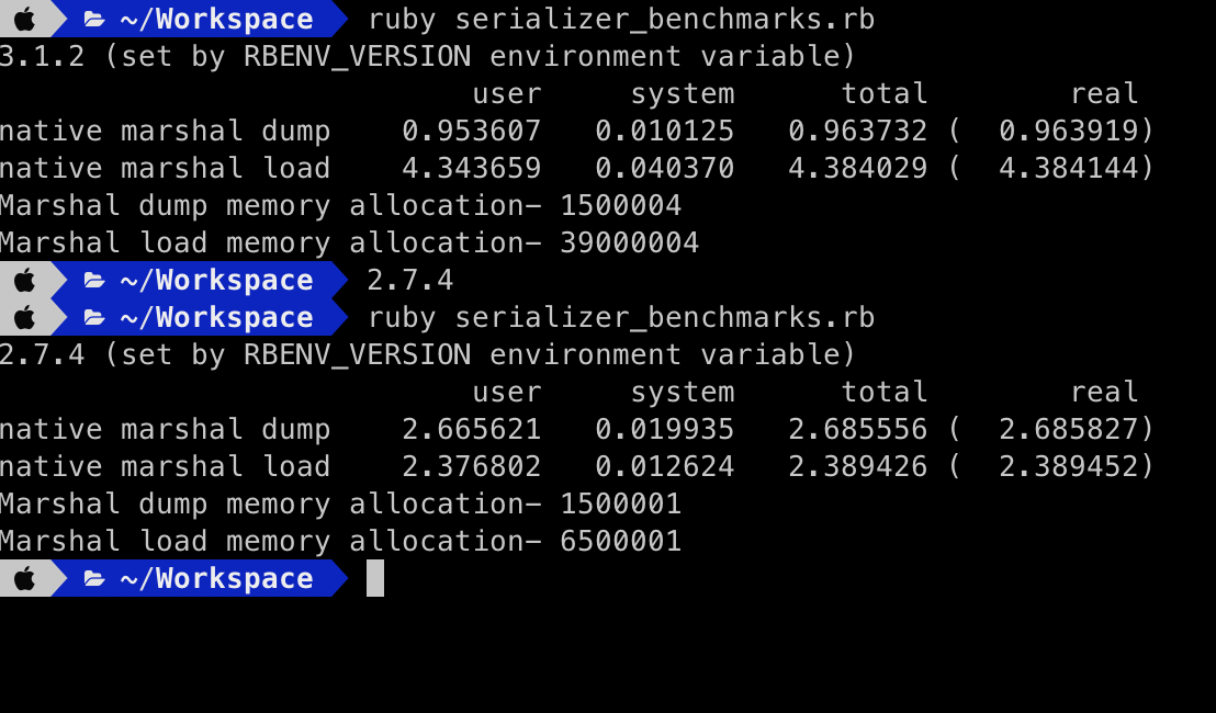 - Subject changed from Degradation in **Marshal load** only in Ruby 3.1.2 compared to 2.7.4 to Significant performance decreases in `OpenStruct#marshal_load` in Ruby 3.0 and 3.1