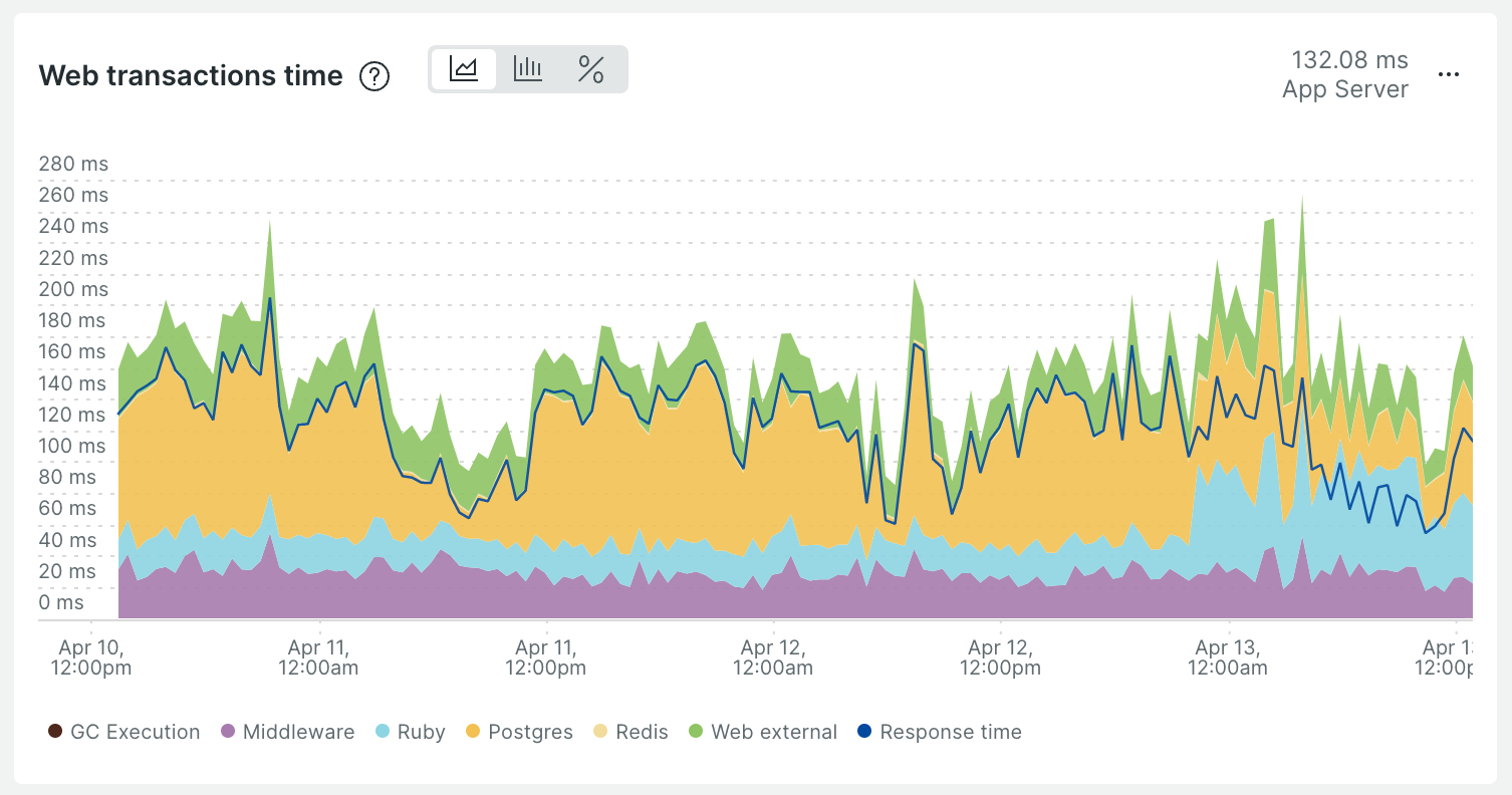 But I don't see a noticeable impact on the overall response times. So that makes me think that maybe, ruby 3.2 reports differently than 2.7 in newrelic
