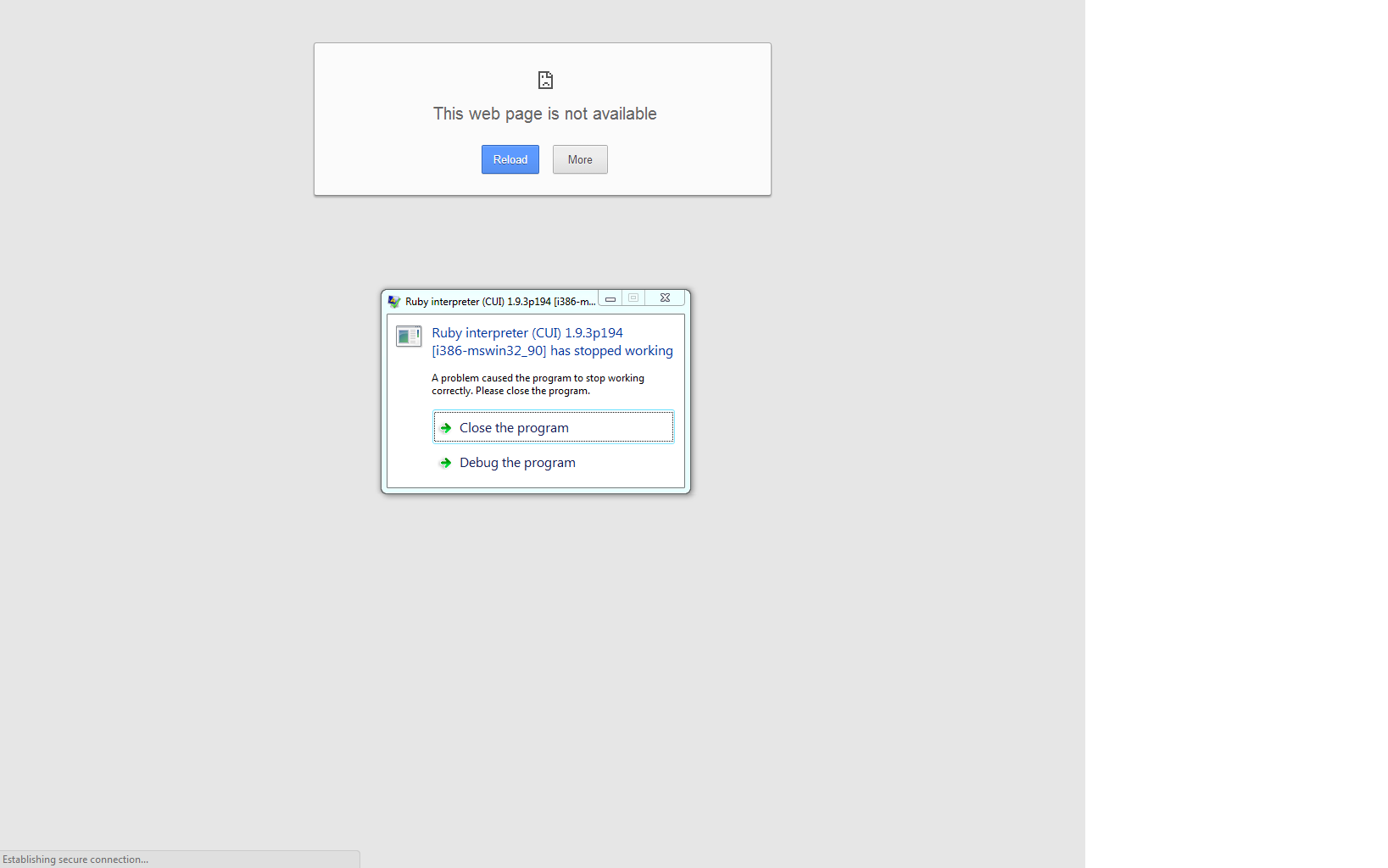 Faulting application name: ruby.exe, version: 1.9.3.194, time stamp: 0x5154804d