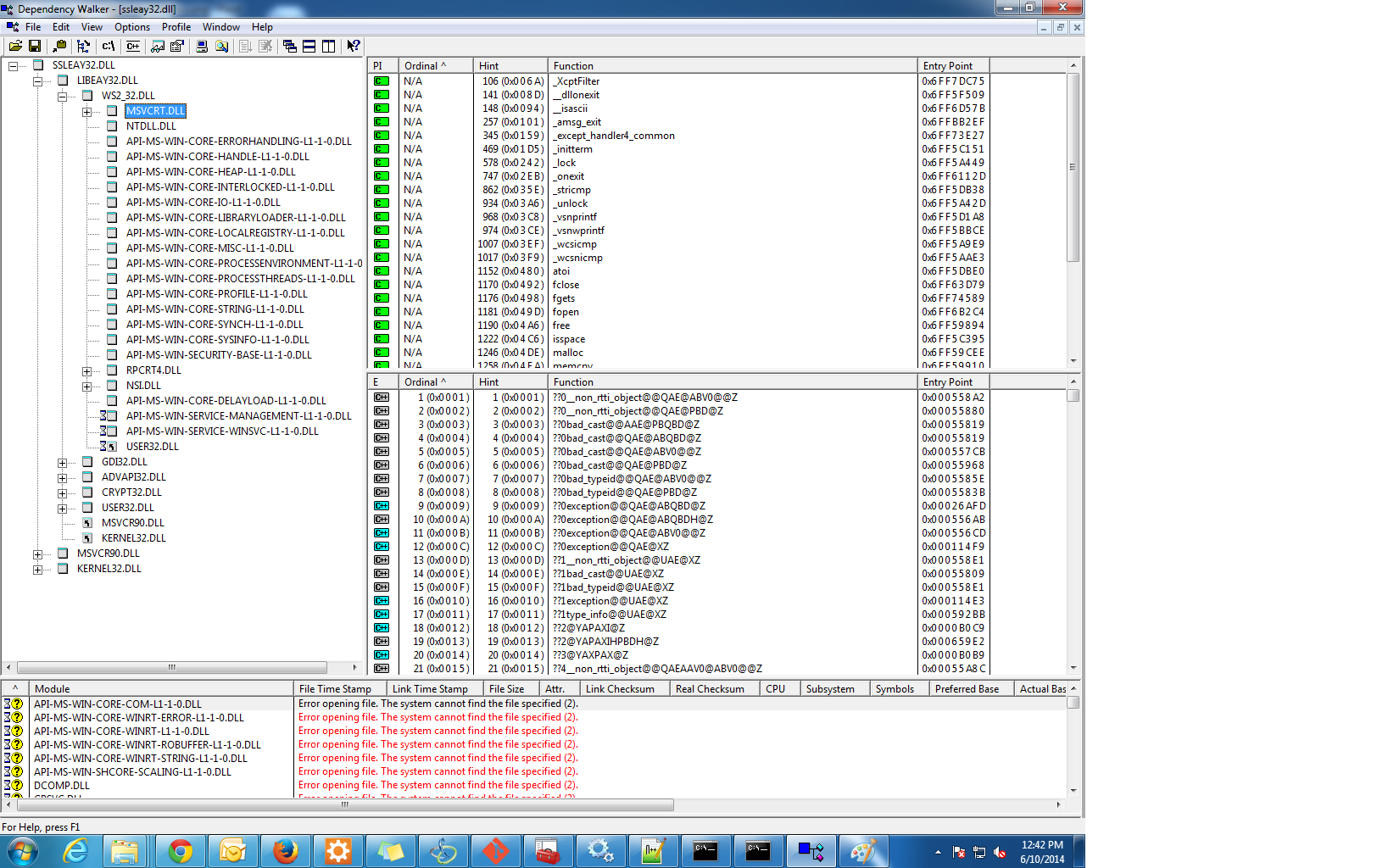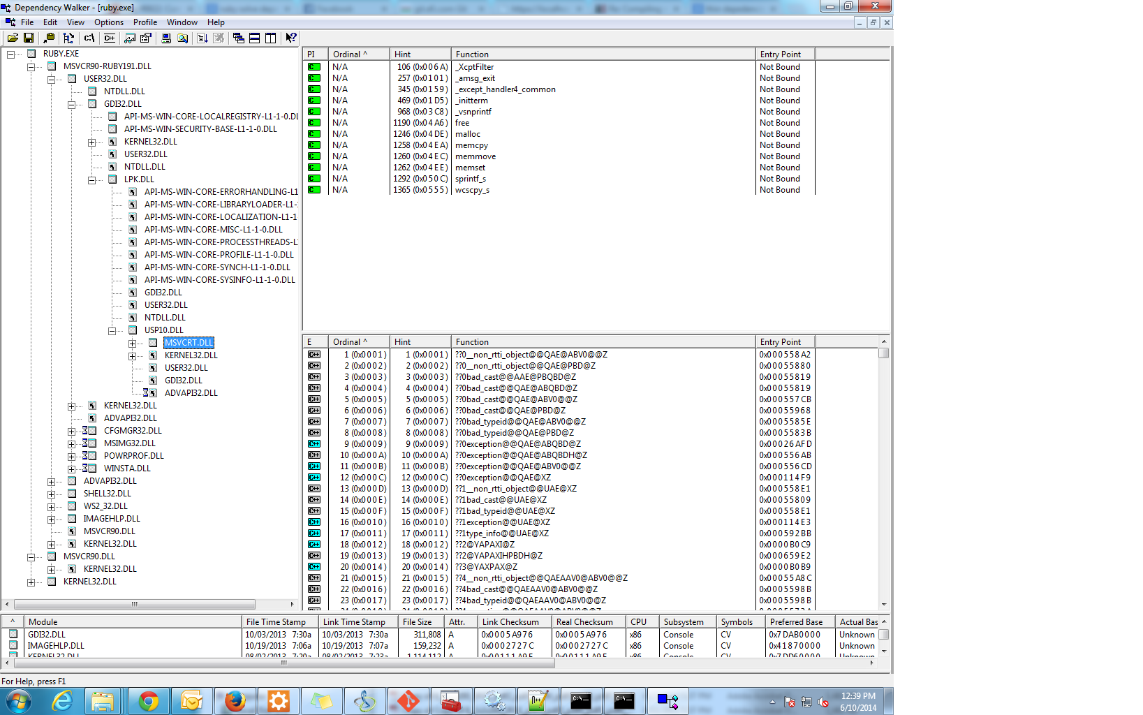 Dont know much about dependency checking, hence did not get much. But understood that three of them depends on both msvcrt.dll and msvcr90.dll. But logs in windows say faluting module path to msvcr90.dll. Attaching screenshot of dependency walker result for the reference